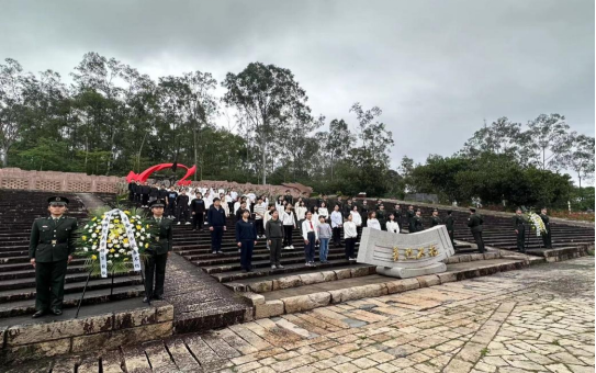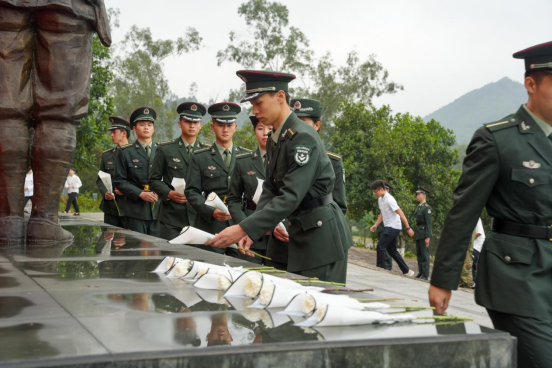 为了新中国成立,“济南第二团”四千余名烈士献出了自己的生命,其中连以上近两百人。穿越岁月沧桑,他们的名字,早已镌刻在共和国的历史丰碑上;他们的精神,也如同一盏盏明灯,照亮我们前行的道路。在雄壮庄严的国歌声中,全体师生代表与在营官兵代表整齐列队、静默肃立,在烈士名录墙前,向革命英烈默哀致敬。四名国旗护卫队成员敬鲜花篮,师生代表整理挽联,全体师生向纪念碑三鞠躬,表达对革命烈士最崇高的敬意。随后,师生代表依次缓步向前瞻仰烈士名录,敬献鲜花,向革命先烈致以深切哀悼。