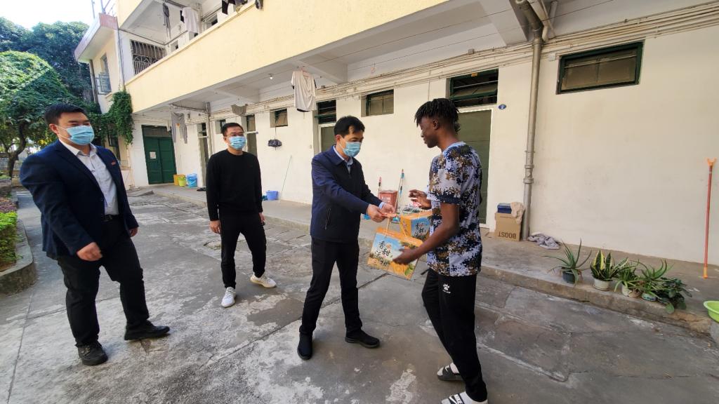 在学生宿舍楼,钟发亮副书记分别与1名塞内加尔籍、2名冈比亚籍留学生、1名河北石家庄籍研究生亲切交谈,详细了解他们留校学习生活情况,要求有关单位切实把各项服务工作做到位,及时了解学生需求,帮助学生、家长解决后顾之忧。他代表学校向同学们送上新春慰问礼包,叮嘱同学们寒假留校做好自身防护,注意饮食营养,合理安排作息,加强体育锻炼,配合学校共同做好防控工作。
