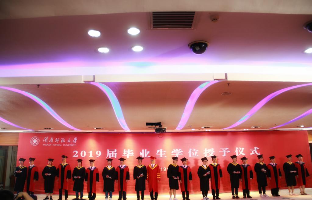 随后,2019届毕业生学位授予仪式在逸夫图书馆五楼举行。全体校领导和各学院院长、副院长为所有获得博士学位、硕士学位、学士学位的毕业生正冠拔穗,颁发学位证书,并和每一位同学合影留念。