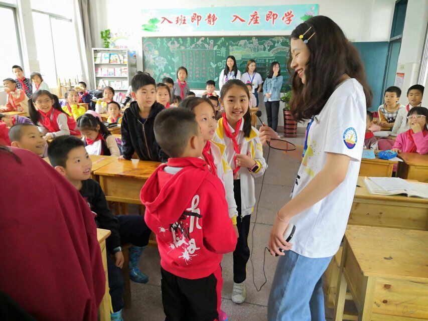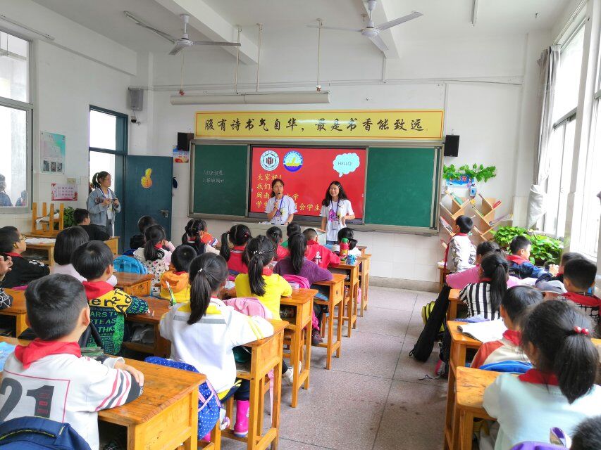 在附属小学,同学们深入学生班级,结合PPT进行讲解,通过互动问答,启发小同学进行思考。课堂上,小同学围绕主题展开了讨论交流,汇报学习收获,课堂气氛活跃,得到附属小学老师们的热烈欢迎。