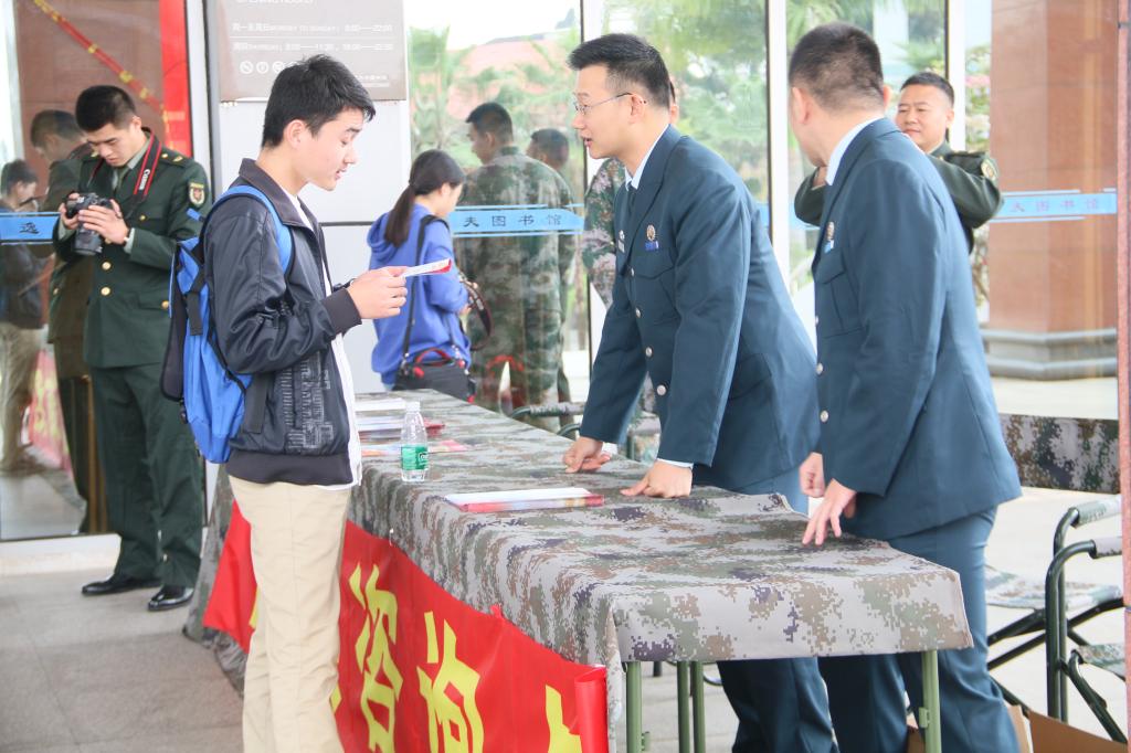 为了进一步营造浓厚的征兵宣传氛围,漳州军分区、芗城区征兵办、龙文区征兵办还联合校武装部在现场开展2019年征兵宣传活动,专设入伍政策咨询点和宣传栏,向学生发放宣传资料,帮助答疑解惑。
