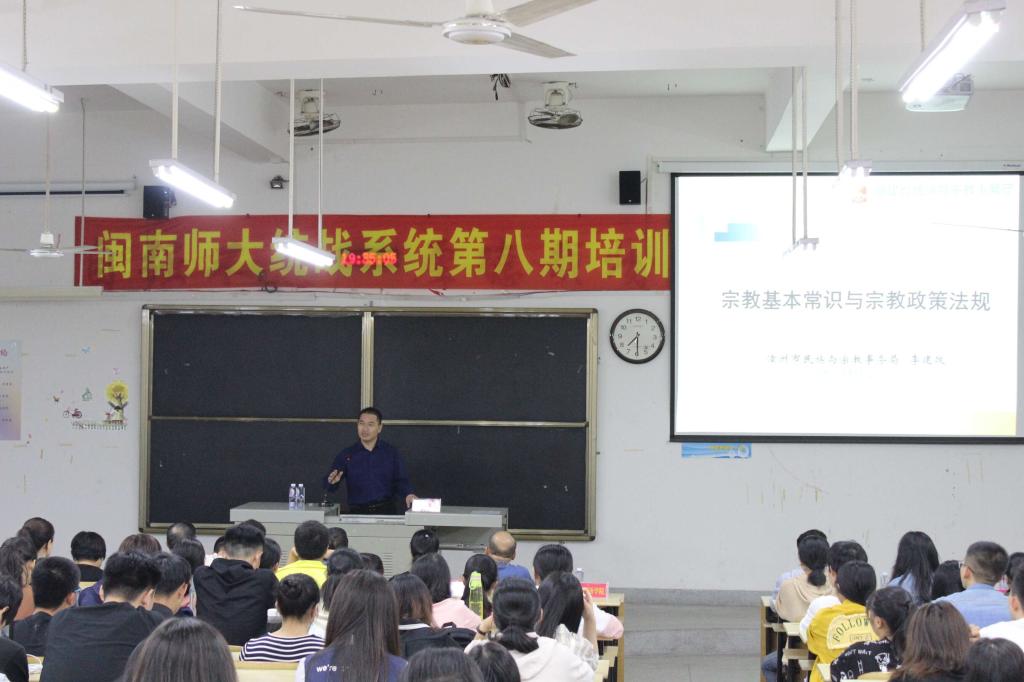 10月18日,我校统战部联合学生处、保卫处在笃行楼223举行“宗教政策和宗教知识”宣讲活动。活动邀请漳州市民宗局宗教科科长李建政主讲,全校师生共300多人参加。活动由校党委统战部长欧阳红红主持。
