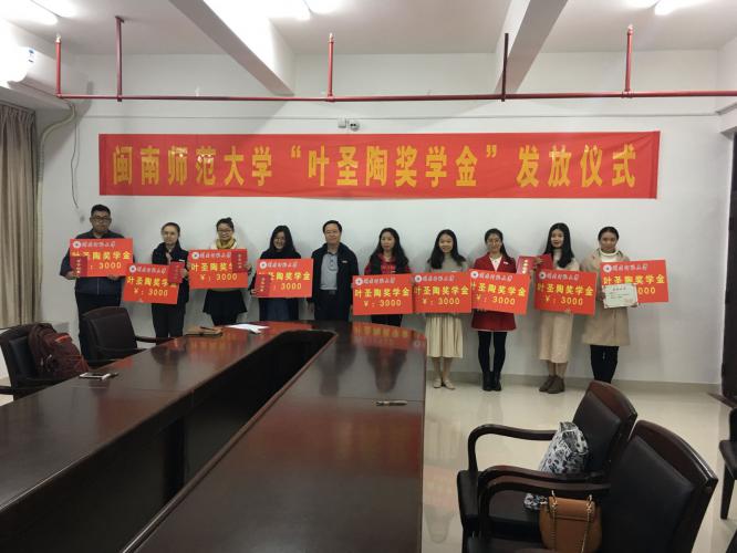 12月14日下午,我校2017年度“叶圣陶奖学金”颁奖活动在科技楼北1209室举行。学工部部长林致远出席活动,9名获奖同学参加颁奖仪式。
