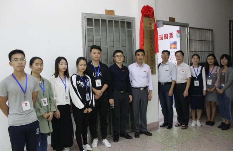 11月15日上午,我校在芙蓉楼三楼举行“创享校园网络文化工作室”揭牌仪式,标志着我校在主动参与省级易班网络思政文化建设、共享应用技术和建设成果方面更上新台阶。校党委书记吴彬镪、学工部部长林致远、马克思主义学院院长陈再生与校易班学生工作站指导老师、学生干部骨干一同参加仪式。