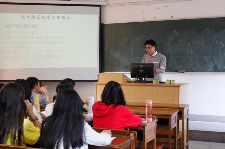 10月29日上午,学生处在逸夫楼302举办校园新闻写作专题培训,邀请教育科学学院蔡毅强老师为学生记者讲授媒介素养提升主题讲座,学生处各学生组织的新闻记者参加听讲。