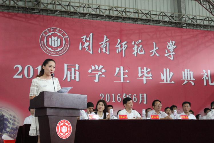 李进金校长发表讲话 吴彬镪副书记主持典礼 肖庆伟副校长宣读表彰名单 教师代表林培锦老师发言 毕业生代表张天衢同学发言 在校生代表黄蓉同学发言 分会场举行学位授予仪式 摄影:连坤金