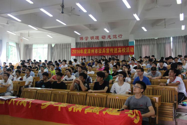 5月26日下午,“2016年度漳州市征兵宣传进高校活动”在我校举行,我校物信学院与生科院近400名同学参加了活动。