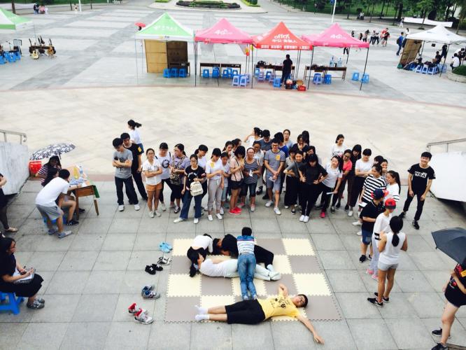 近日,一场以“畅爽心灵,心声雀跃”为主题的心理素质拓展活动在弦歌广场举行。活动以6人一组闯关的形式进行,共来自各院系的38支队伍参与挑战。