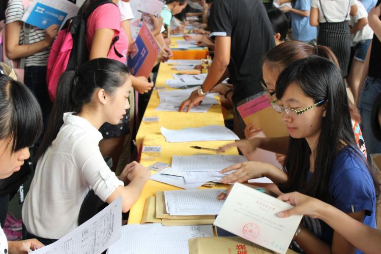 在报到现场,随处可见热情饱满、细心服务的工作人员和志愿者,各类指示牌指向明确、一目了然。各院系师生们热情地向报到注册新生介绍专业情况,引导他们办理相关手续。学校还在现场设立了新生服务咨询中心,热情地帮助学生、家长解决各种问题和困难;开设“绿色通道”及助学贷款咨询办理点,为家庭经济困难的学生办理入学手续,还设有应急医疗服务点、志愿服务站、免费饮水点等服务平台,为新生提供各种服务。