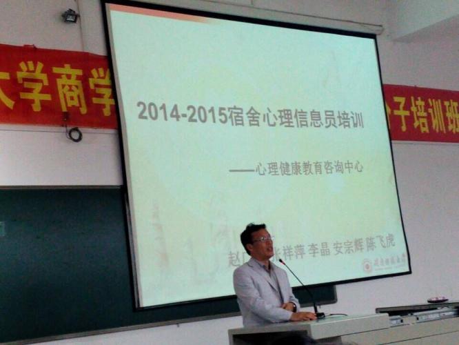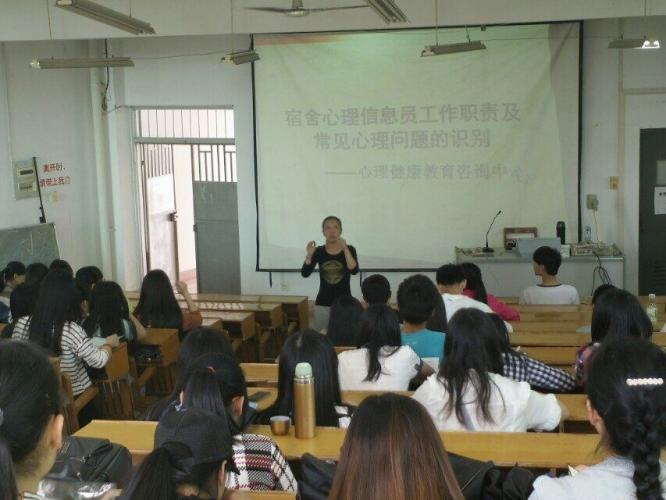4月中下旬,校学生处开展第五期宿舍心理信息员培训活动,组织9名心理学专业老师深入各学院,为我校2013级、2014级共2016名宿舍心理信息员进行培训。