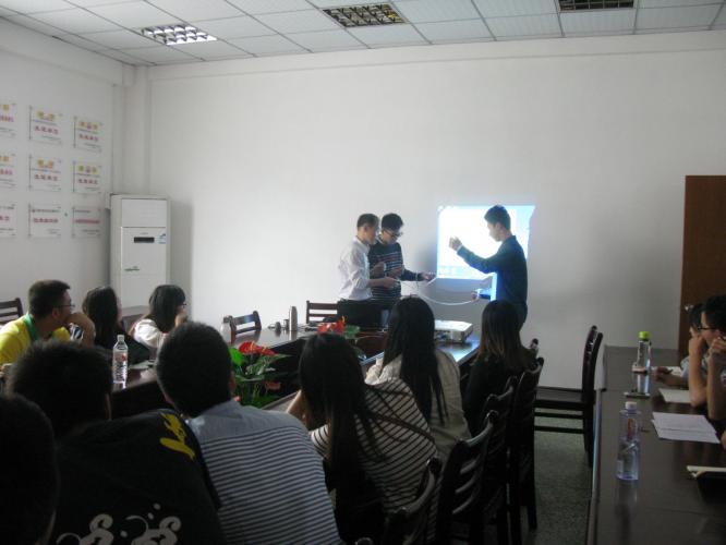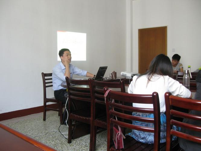4月25日上午,外国语学院党委书记黄伟东、校团委副书记蔡斌在达理学生活动管理中心三楼为第六期学生干部培训班讲课。