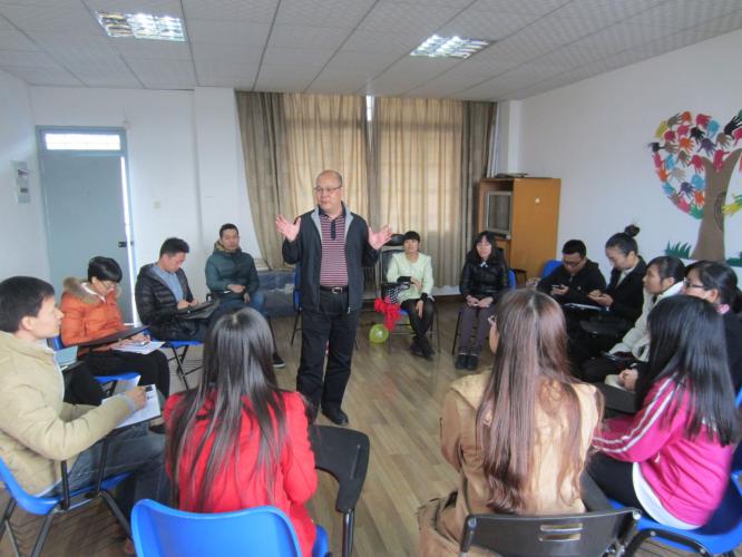 12月18日上午,学生处在博中601室为我校辅导员开展了一次生动有趣的人际交往团体心理辅导活动。历史学院副院长、副教授黄耀明老师对当前大学生群体的心理特点进行了深入浅出的分析,并通过 “呼啦圈通电”、“夹气球pk赛”、“我是小填词家”三个活动,让辅导员们亲身体验小组活动过程,拓宽工作视野,放松身心。