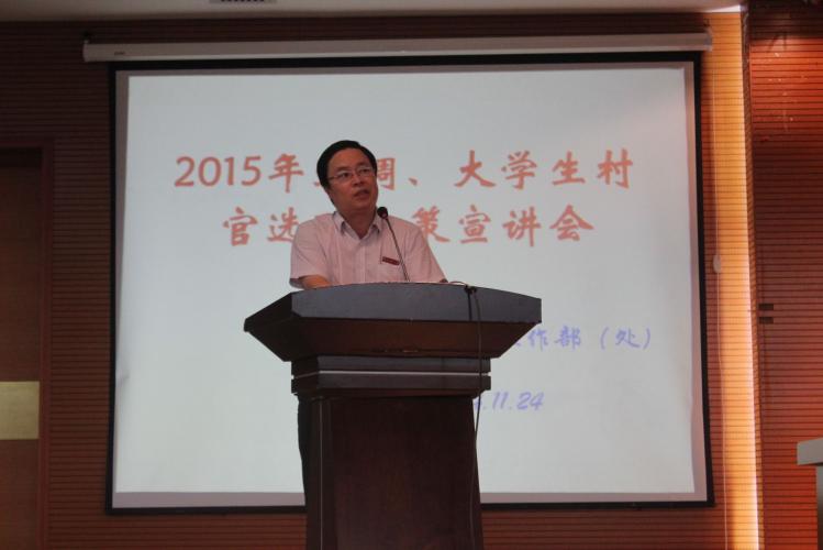 11月24日下午,我校在逸夫图书馆报告厅举行2015年选调生、大学生村官选聘工作政策宣讲会,邀请2014年我校选调生康荣回校分享考试经验。学生处处长林致远出席宣讲会,近500名学生到会听讲。