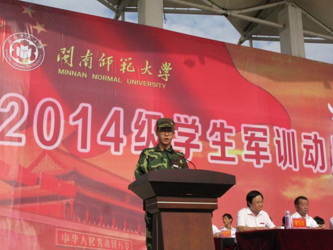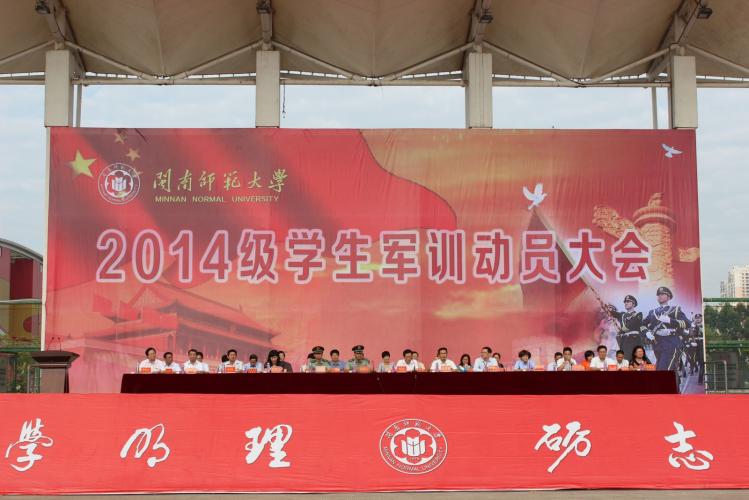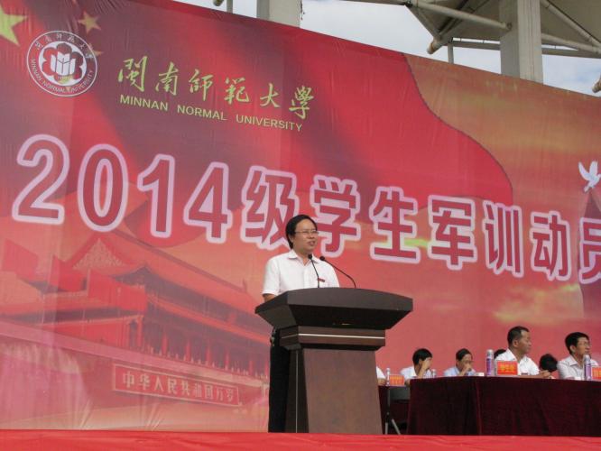 校长李进金、校党委副书记吴彬镪、副校长李顺兴、校长助理林静华、承训部队首长及我校有关部门、各学院党总支负责人出席军训动员大会,承训部队官兵、带新生辅导员及全体新生参加大会。学生处处长林致远主持大会。