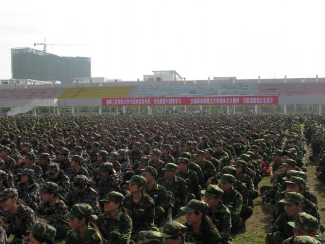在学校周密的安排部署下,10月8日上午,2014级新生迎来了期待中的校园军旅生活,他们一身戎装在西区田径场整齐列队,在雄伟的国歌声中开始了为期两周的军训时光。