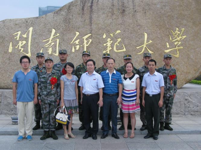 9月11日清晨,我校在南大门举行欢送活动,欢送8名在校大学生奔赴军营。现场,殷切的叮咛,热情的拥抱,难舍难分、含泪挥别的场景成为了初秋校园里最难忘的一幕。校学生处处长、武装部部长林致远,副处(部)长黄伟东及相关学院辅导员、同学一同前往欢送并合影留念。