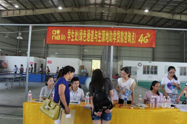 今年,新生报到点仍然设在了球类馆,所有学生集中一站式报到,方便、快捷,很短的时间内就可将所有手续全部办完,感觉棒棒哒。此外,免费茶水、平安电话亭、助学贷款及绿色通道咨询办理等等一应俱全,志愿者们随时准备提供咨询和帮助。球类馆旁凉爽的龙文馆是家长休息区,学校还为家长准备了凉席,方便他们夜间休息。