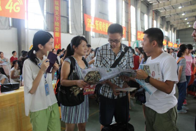 校学生通讯社的同学向新生家长发放《新生攻略》