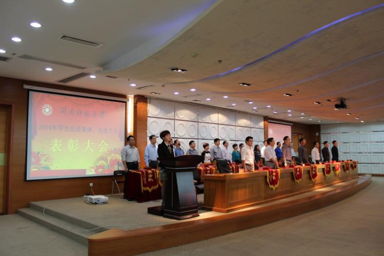 5月8日下午,逸夫图书馆五楼报告厅洋溢着一片喜庆,我校2014年涌现出的一大批学生先进集体和先进个人在这里接受了表彰。校党委副书记林春生,副校长李顺兴,校长助理、学生处处长林静华,宣传部、团委、教务处、研究生处、各学院党总支的领导,全体辅导员及受表彰学生代表参加了大会。大会由林静华主持。