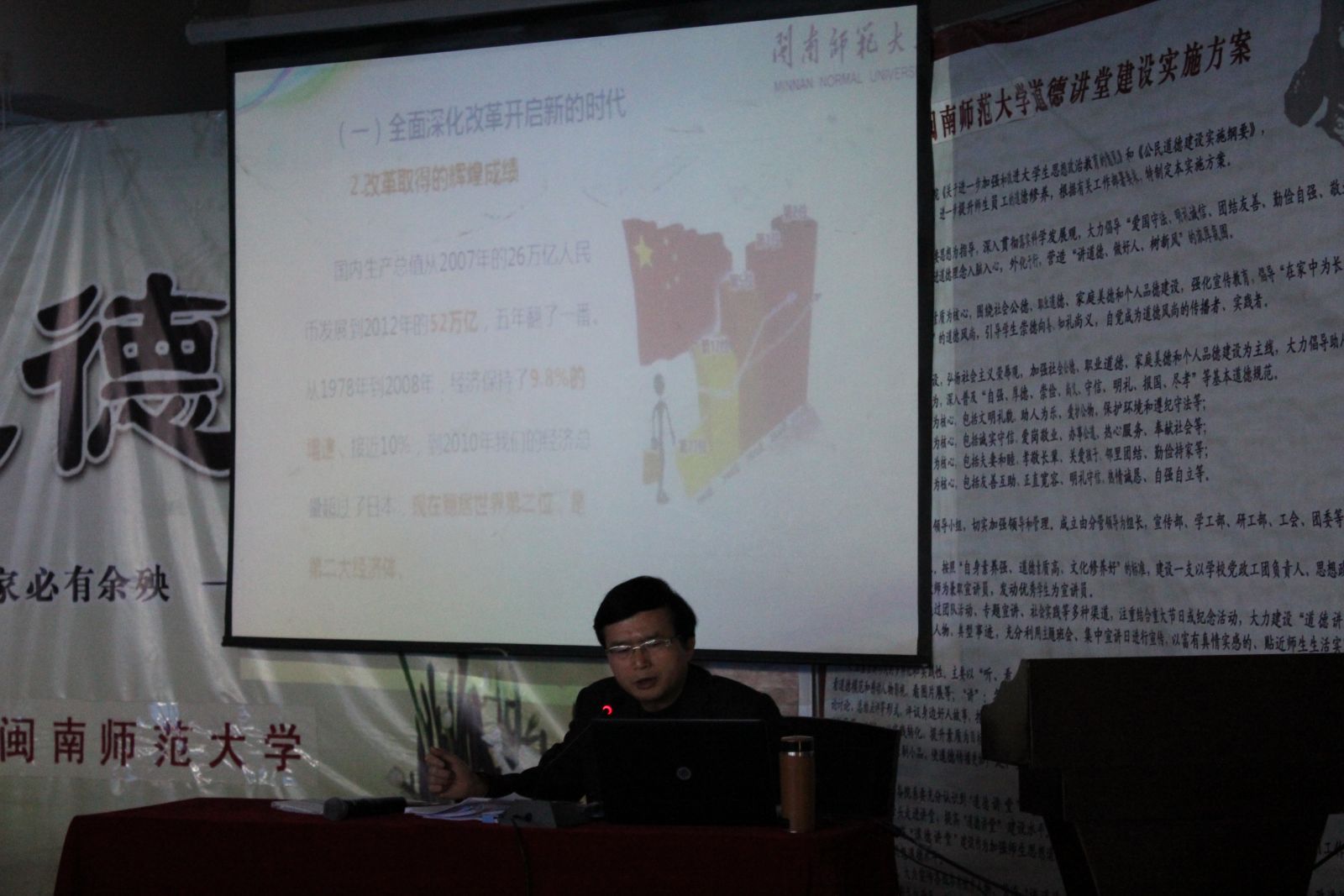 会上,教育科学学院党总支书记朱志明教授首先以《十八届三中全会全面深化改革的重大突破和精彩新论》为题,从三大方面系统阐释了全面深化改革的非凡意义,深刻解读了三中全会的精神内涵,对我校大学生思想政治教育工作提出了贯彻落实的建议,既有很强的理论性和针对性,又有突出的实践性和指导性,为全体辅导员上了精彩的一课。