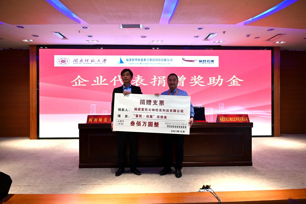据悉,“富民·羽翼”国企奖助金是2021年福建富民云咖信息科技有限公司为响应国家号召、依据教育部产教融合相关文件精神和要求,为推动学校教育事业发展,公益捐赠给省内部分高校,专项用于扶持学生提升职业技能、学历。