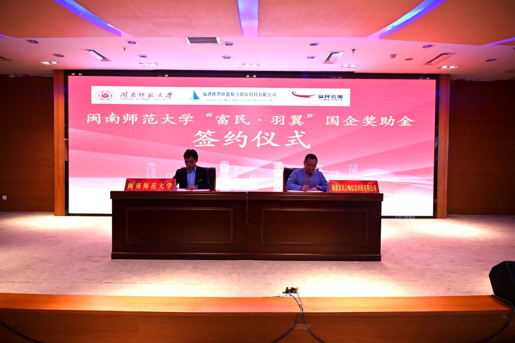 12月8日下午,我校在逸夫图书馆报告厅举行“富民·羽翼”国企奖助金捐赠仪式。校党委副书记钟发亮、福建富民云咖信息科技有限公司总裁郑旺泉出席仪式,福建富民云咖信息科技有限公司有关代表、学校有关部门负责人及各二级学院党委副书记、团委负责人、学生代表参加了仪式。