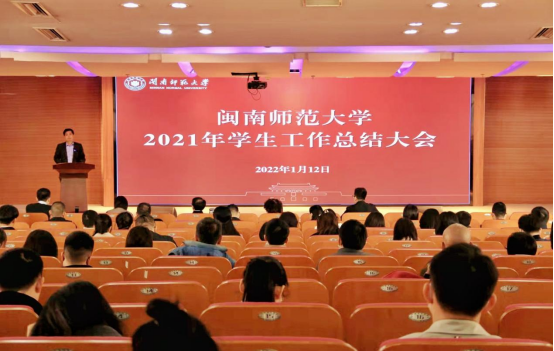 1月12日上午,我校在逸夫图书馆五楼报告厅召开2021年学生工作总结大会。校党委副书记钟发亮出席会议,学生工作处、招生就业处、校团委及全体政工干部参加会议。
