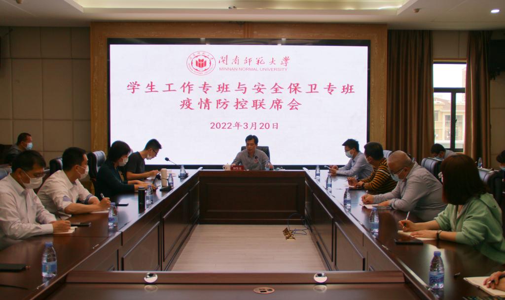 为落实省委省政府组织召开的全省教育系统疫情防控工作视频会议精神,从严从紧落实校园防控举措,3月20日下午,我校在科技信息楼1607会议室召开学生工作专班与安全保卫专班疫情防控联席会议。校党委副书记钟发亮出席并主持会议,学生工作专班、安全保卫专班相关人员及各学院党委副书记、相关创新平台负责人参加会议。