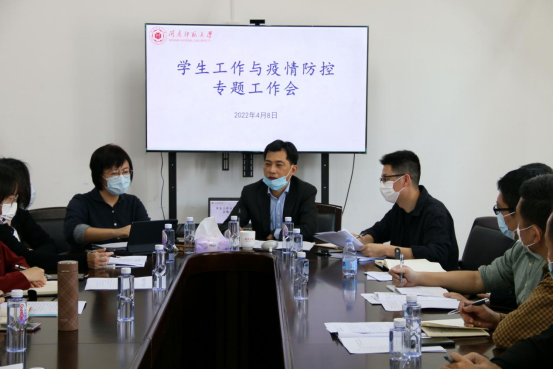 4月8日上午,疫情防控学生工作专班在科信楼北1209召开专题工作会,进一步落实新阶段疫情防控部署,研究学生工作推进落实的有效机制。校党委副书记钟发亮出席会议,学生工作处相关人员及各学院、相关创新平台学生工作负责人、学工办主任参加会议。会议由学生工作处副处长陈慧燕主持。
