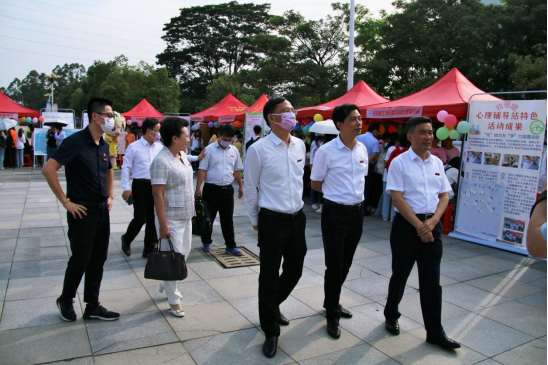校领导和嘉宾共同参观我校沁心心理育人体系成果展、“画”说心理作品展区、心理中心特色体验区、学院心理辅导站特色活动区,进一步了解我校心理育人工作开展情况。