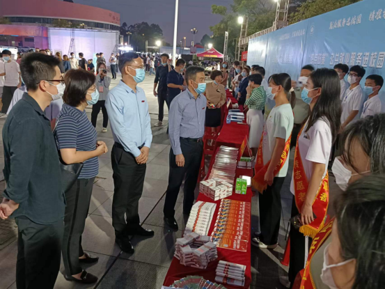 5月19日晚,“百企千岗进校园”2022年永利3044集团官网求职夜市在弦歌广场举行。会场设有四个功能专区,其中,由漳州市征兵办、芗城区征兵办和我校人民武装部共同举办的应征入伍政策宣传专区门庭若市、氛围浓烈,吸引了一大批有志青年前来咨询。