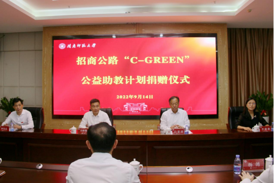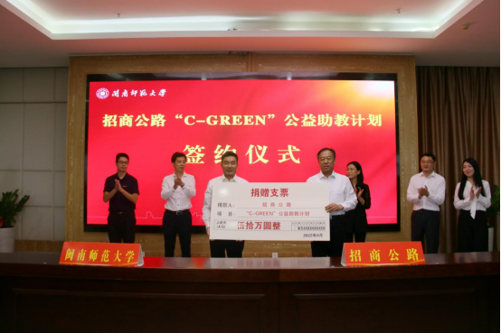 仪式上,双方举行了招商公路“C-GREEN”公益助教计划捐赠签约。