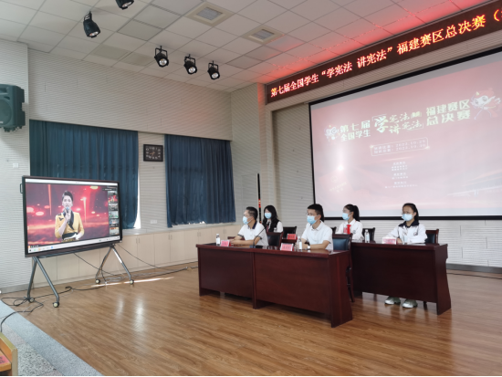第七届全国学生“学宪法讲宪法”福建赛区总决赛由福建省教育厅、福建省司法厅主办,厦门市教育局承办。本届活动以纪念现行宪法公布施行四十周年系列活动为主线,以深入学习宣传习近平法治思想为核心,与迎接党的二十大和学习宣传党的二十大精神相结合,着力培养、增强学生的宪法意识和法治素养。为做好疫情防控工作,福建赛区总决赛从线下改为线上,总决赛现场设在厦门,各地分会场通过网络参加比赛。