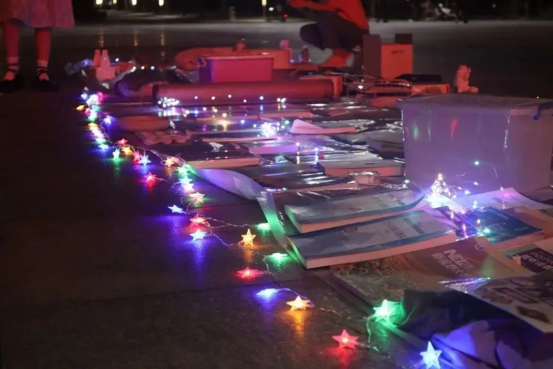 在跳蚤市场的地摊上,不仅有书籍,还有玩偶、衣物、手作等等,可以说是包罗万象,热闹非凡。偶然经过的同学驻足一探,也有专门赶来的同学细心挑选。现场叫卖声、交谈声、欢声笑语不绝于耳,摊位上都站满了人,热情的学长学姐把自己曾经喜欢并珍视的物品以非常便宜的价格卖给同样喜欢它们的学弟学妹。从艳阳高照到日落西山,弦歌广场的人群还是久久不散。卖家的商品被抢购一空,买家大多都是满载而归,两心欢喜。人流络绎不绝,灯光星星点点,这是秋季收获的一道美好的风景。