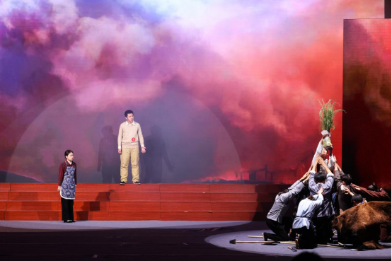 舞台剧《龙江颂廉》以陈元光开漳、蔡新立家训、谷文昌护树三个故事串联而成,其中,第一幕《元光开漳》讲述了陈元光平定蛮獠啸乱、维护国家统一后带领族人驻守闽南、开发漳州的故事,展现了陈元光家族“舍小家为国家”的精神;第二幕《蔡新立训》讲述了蔡世远与蔡新“叔侄两帝师”为官清廉正直,维护良好家风,突出了蔡氏一族“严义利之辨”的传承;第三幕《谷公护木》讲述了“大跃进”时期,谷文昌顶住压力,保住东山岛来之不易的木麻黄,并带领人民修建八尺门海堤的故事,彰显了共产党员“实事求是、一切为了人民”的高风亮节。该剧通过加入漳州讲古、漳州木偶戏、芗剧、东山歌册等非物质文化遗产元素,将三个故事串联成完整统一的戏剧整体,以典型故事人物向观众展示闽南文化精神内核,为现场观众呈现了一部地域特色浓郁、主题特色鲜明、故事情节动人的优秀剧目。