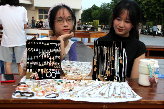 走进跳蚤市场,琳琅满目的“商品”,摆满了每个小摊儿,同学们化身“摊主”们尽情吆喝着,专业课课本、考研书籍、学习用具、运动器具、各类手工挂饰……各类商品应有尽有,吸引同学们驻足尽情“淘宝”,市场热闹非凡。活动现场还设自由摆摊区,服务没来得及报名的同学们将闲置的物品摆摊售卖。
