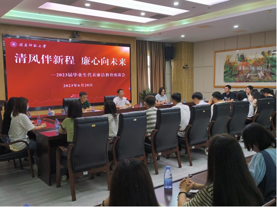 为引导毕业生树立廉洁从业意识,帮助毕业生们顺利完成从学校人到社会人的转变,扣好崇廉尚洁、严于律己的第一粒扣子,6月20日,我校在科信楼1607会议室召开“廉洁自律 迎风启航”2023届毕业生代表座谈会。校党委常委、纪委书记戴福康出席座谈会,各学院拟入职公务员、选调生、企事业单位、大中小学教师以及升学的30名毕业生代表参加座谈。座谈会由学生处副处长陈佳薇主持。