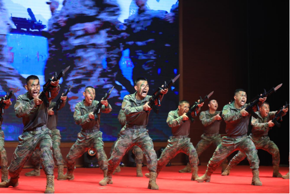 “我和我的祖国,一刻也不能分割”,部队官兵同参演学子一道,用诚挚歌声诉说着对祖国的热爱。