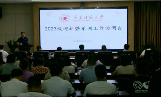 会上,学生处处长、校团委书记蔡斌从迎新报到、新生入学教育、开学典礼筹备、军训协调等方面对迎新暨军训工作进行了安排。招生就业处处长林贵东就新生入学资格审查、未报到管理及有关服务工作事项进行了说明,对重点工作进行了布置。