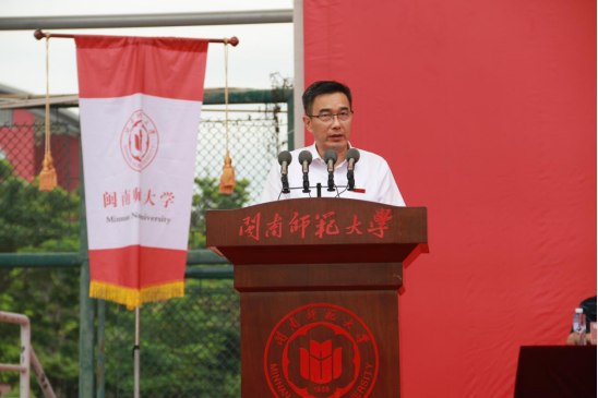 开学典礼在庄严的国歌声中拉开帷幕。文学院陈柳蓉、历史地理学院林晨星作为新生代表发言。数学与统计学院李伟诺、商学院林涵煜作为在校生代表发言。计算机学院罗智鹏副教授、马克思主义学院何铭灏副教授作为教师代表发言。