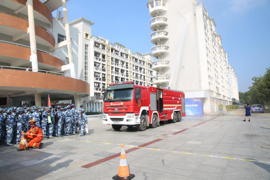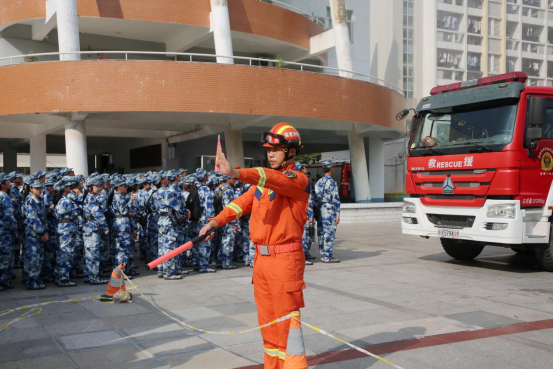 消防官兵赶赴现场,向同学们介绍宿舍防火基本知识,讲解灭火方法和实用技巧,模拟搜救受伤人员,并向师生演示高空水枪灭火作业。