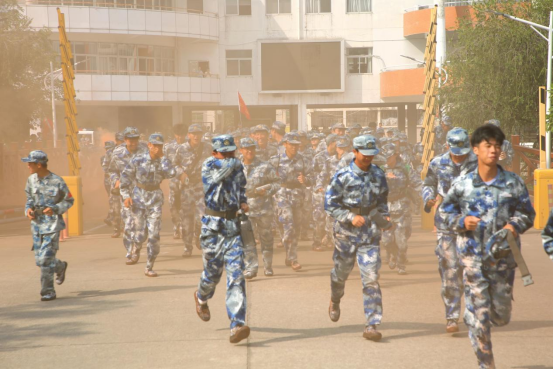 在北江滨校区,一场消防自救与安全疏散演练正在紧张进行中。在应急疏散警报声中,同学们循着应急疏散通道,按照口诀要求,弯腰、低身、捂住口鼻,穿越翻腾的浓烟,紧张有序、有条不紊地撤离宿舍,快速转移至安全地带。