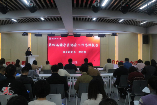第四届辅导员协会副会长邢舒惠代表辅导员协会做工作总结报告。第五届辅导员协会副会长张啸啸代表新一届辅导员协会发言。