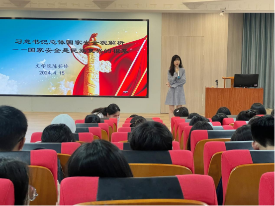 “一切为了人民,一切依靠人民。我们要时刻保持警惕,共同筑牢维护国家安全、反奸防谍的钢铁长城。”4月14日下午,在闽南师大砺志楼120智慧教室,来自各学院200多名师生正在聚精会神参加国家安全专题讲座活动。来自漳州市国安局的干警结合PPT展示和视频播放,通过以案释法的方式,生动地为现场师生讲述什么是国家安全、涉嫌危害国家安全的犯罪行为、如何维护国家安全等问题,解读了《中华人民共和国国家安全法》《中华人民共和国反间谍法》等核心内容,为在场师生们上了一堂生动的国家安全教育课。