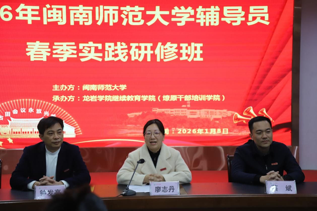 为深入贯彻落实《全面加强新时代福建省高校辅导员队伍建设实施方案》,赋能我校辅导员队伍专业化、职业化、专家化发展,1月8日至10日,学生工作处在龙岩市举办2026年辅导员春季实践研修班,近40名一线辅导员和学生处相关科室人员参训。龙岩学院党委书记钟发亮、永利3044集团官网党委副书记廖志丹出席开班仪式。
