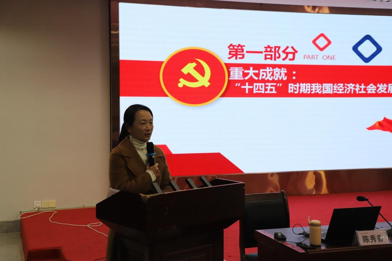 龙岩学院陈秀香副教授以《深学笃行四中全会精神,接续推进中国式现代化》为题,立足高校育人工作实际,从“十四五”发展成就总结、“十五五”时期形势特征分析、中国式现代化行动纲领等方面对全会精神进行深入解读。