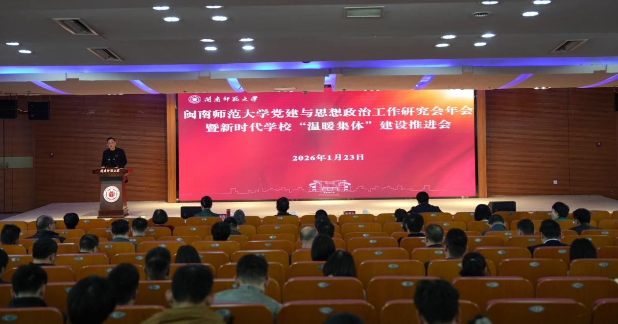 为扎实推进党建与思想政治工作协同体系建设,激发学校各类集体的“温暖”功能作用,1月23日下午,我校在逸夫图书馆五楼报告厅召开党建与思想政治工作研究会年会暨“温暖集体”建设推进会。校党委书记李顺兴,校党委副书记、校长张龙海,校党委副书记林致远,校党委副书记廖志丹出席会议。相关职能部门的负责人、各学院党委书记、党委副书记、全体辅导员、班主任和马克思主义学院思政课教师代表参加会议。会议由校党委副书记廖志丹主持。