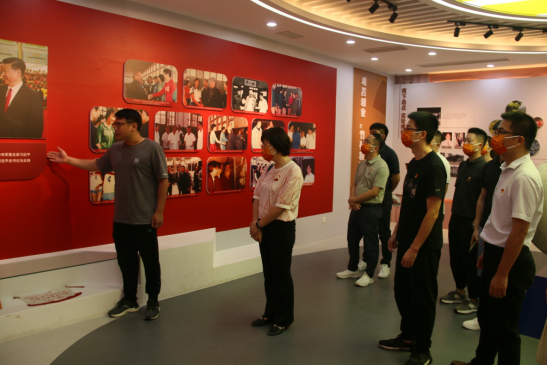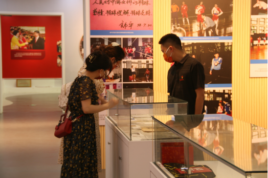 中国女排腾飞纪念馆展示了珍贵的历史照片、荣誉奖章、奖状、奖杯仿制品以及中国女排姑娘刻苦训练时使用过的部分实物等大量历史资料。在讲解员的带领下,党员同志从训练基地“竹棚”草创时的艰苦,到女排队员们顽强拼搏的足迹,近距离感受荣誉后面所付出的辛勤汗水、泪水、血水,中国女排所展示出的爱国之心、夺冠之志,让同志们受到了一次深刻的教育。