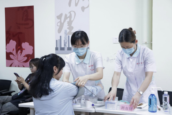 专家团队在漳州市医院副院长、朝阳医院院长林聪猛的带领下,分别在我校瑞京“一站式”学生社区设立了血液科、感染科、骨科、康复科、神经内科、心内科、乳腺外科、超声科等8个义诊服务点,共有19名医务人员参加活动,为师生们提供免费医疗检查和治疗服务。