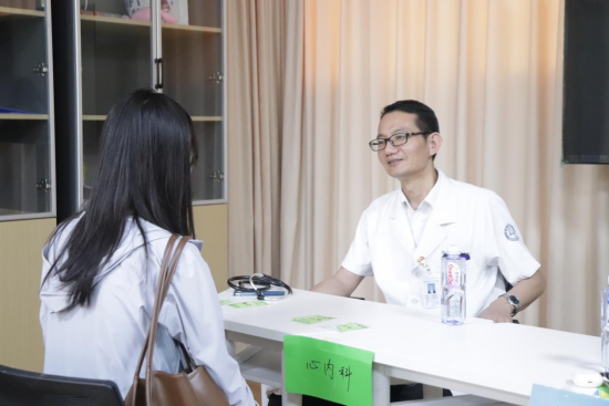 从下午3点开始,义诊服务点便聚集了大量师生前来问诊,在志愿者的引领下,有序前往各义诊服务点等候。现场,医生们凭借专业的临床经验,并利用携带的先进检查设备,耐心细致地为前来问诊的师生提供检查咨询、健康宣教等专业的医疗服务。